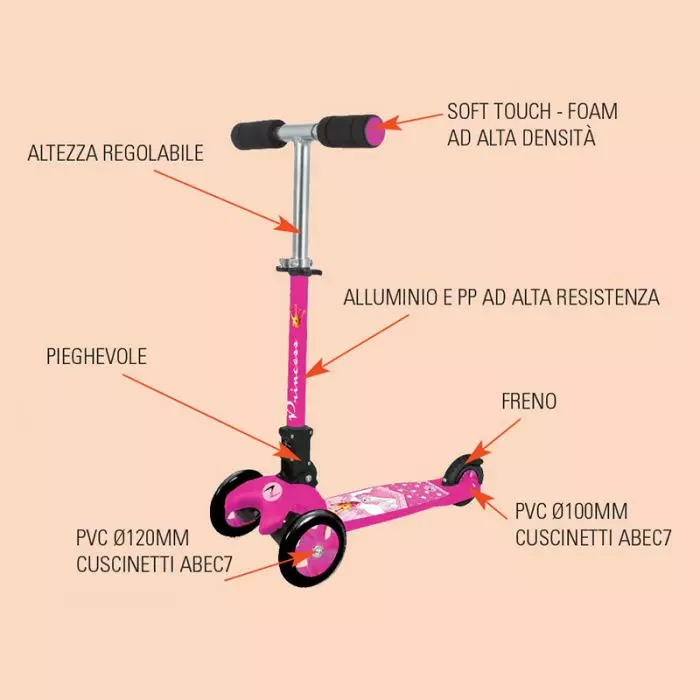 Monopattino ADVENTURE KID PRINCESS a 3 ruote, pieghevole