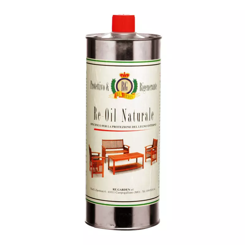 Re-Oil NATURALE non contiene solventi nocivi e garantisce resistenza ai raggi ultravioletti nonchè durata nel tempo.