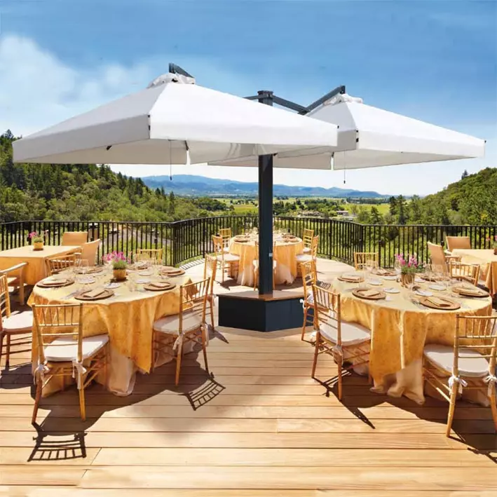 Ombrellone AUGUSTA in alluminio con doppia apertura a movimento indipendente.