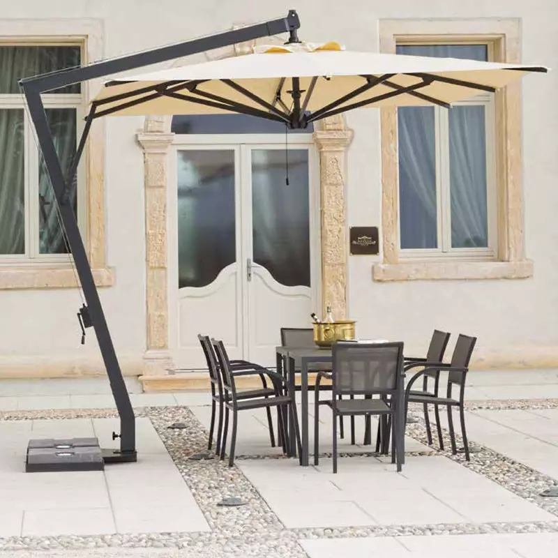 Ombrellone da giardino VITTORIA ha braccio laterale ha meccanismo girevole a 360°, per spostare con un solo gesto la copertura senza dover spostare l'intero ombrellone!