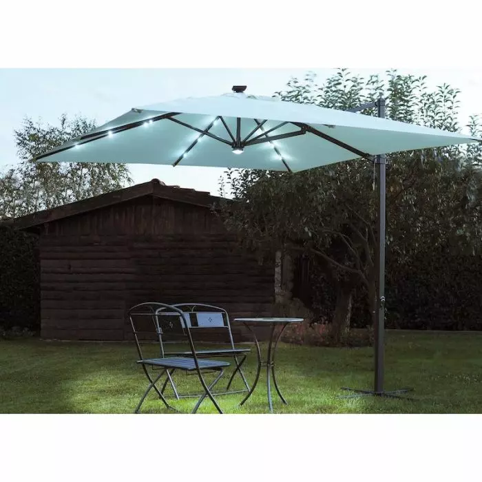 Ombrellone quadrato PARIGI 3 x 3 m in alluminio con LED, a manovella