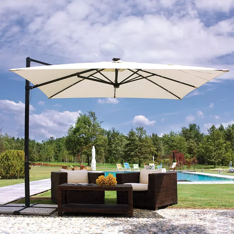 L'ombrellone quadrato PARIGI ti riparerà dai pomeriggi più assolati e illuminerà le tue serate estive.