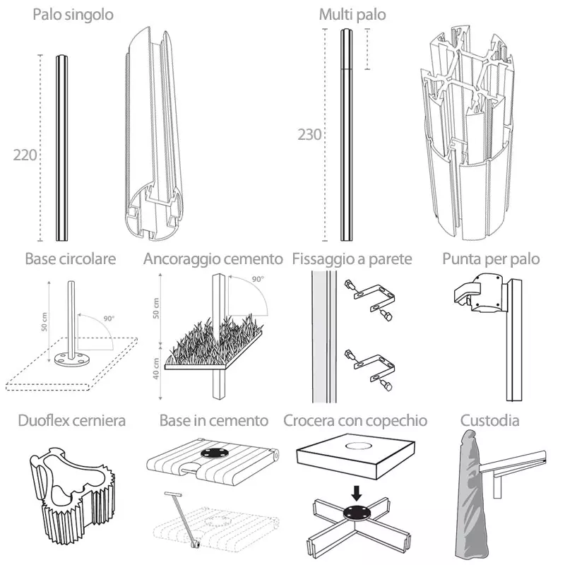 Palo e accessori per fissaggio Ombrellone PARAFLEX duoflex