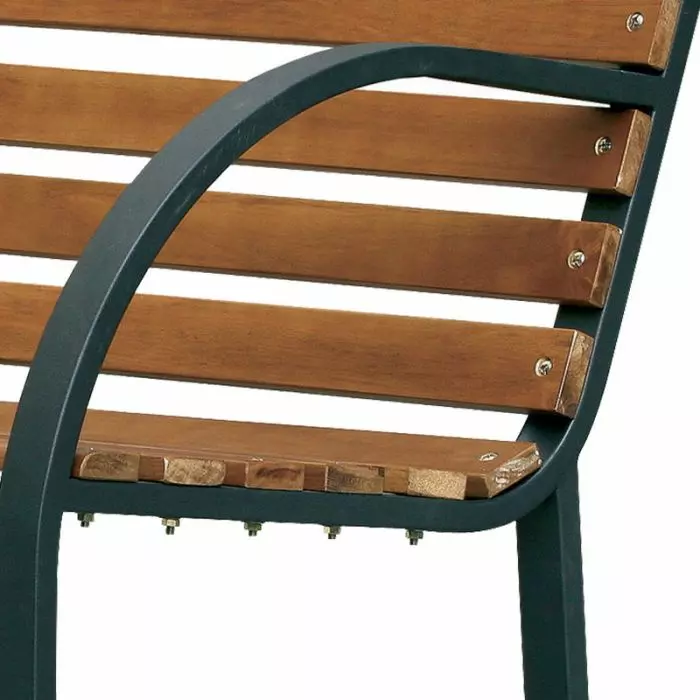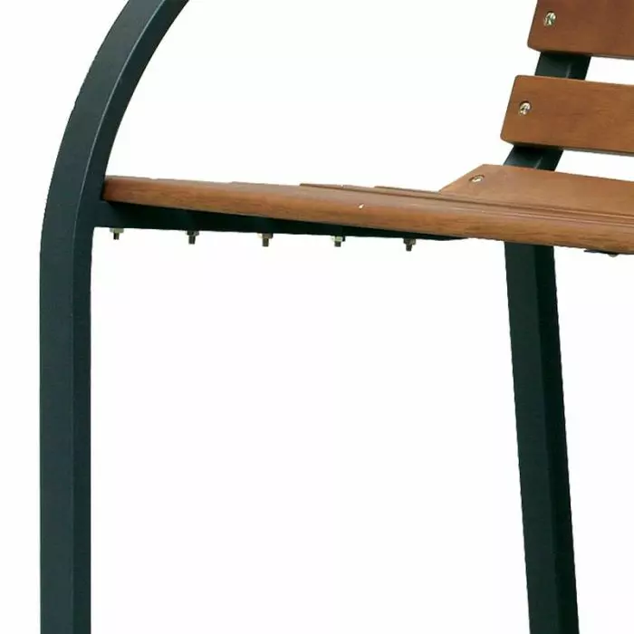 Il nero della struttura, insieme al legno delle doghe, donano calore e permettono di adattare questa panchina in ogni ambiente aperto.