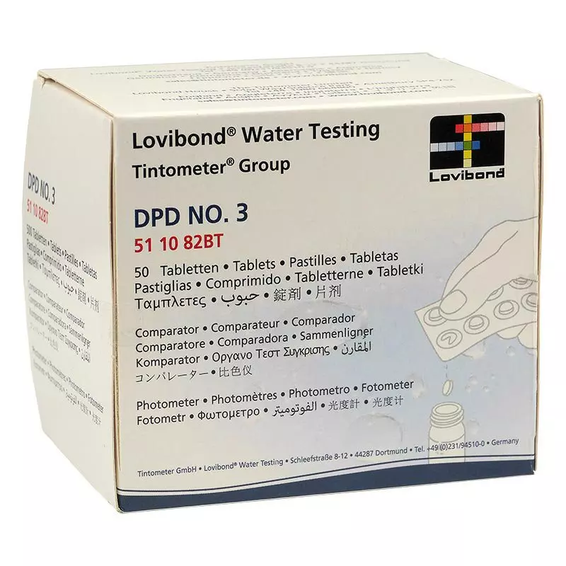 Pastiglie reagenti Lovibond per analisi Cloro piscina DPD 3, in confezione da 50 pezzi.