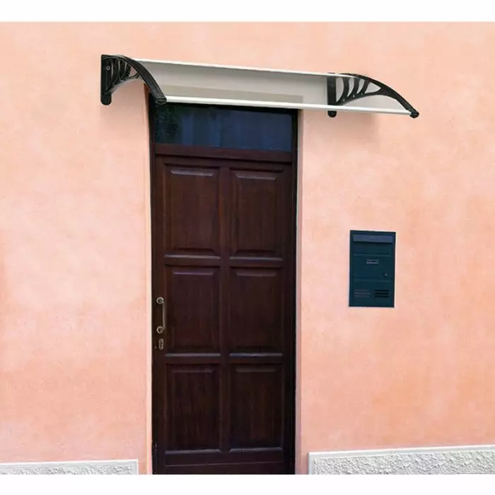 Pensilina in ABS 60 x 100 cm, copertura policarbonato alveolare trasparentePensilina da esterno con copertura in policarbonato alveolare trasparente e staffe laterali in ABS, solida e resistente, perfetta per creare un riparo per porte e finestre, per proteggerle dalla pioggia o dal sole.