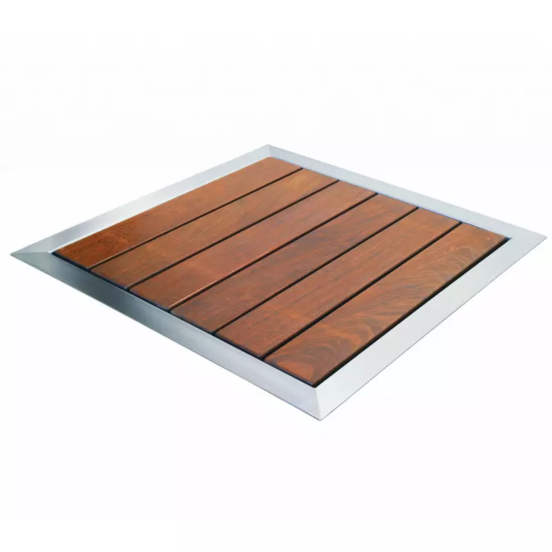 Fabbricato in legno tropicale di Ipè e l'acciaio inox AISI 316L satinato, questo piatto doccia va parte della linea Pluvium di Astrapool ed è pensato per essere abbinato alle docce della stessa serie.