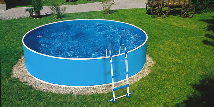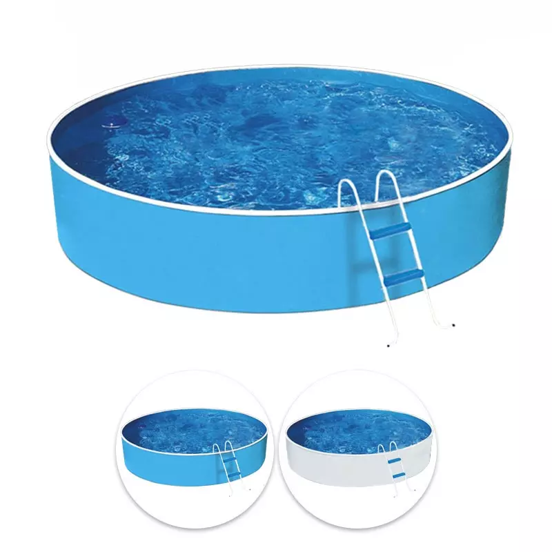La piscina fuori terra della serie AZURO BASIC ha una struttura in lamiera d'acciaio, completa di tutto, pratica, economica e facile da installare.