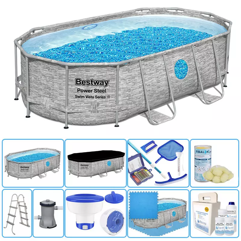 Nei kit della piscina fuori terra Bestway POWER STEEL è compreso tutto il necessario per il funzionamento della vasca in modo di potersela godere da subito.
