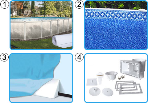 Liner presaldato a sacco di spessore 0,40 mm già sagomato come da forma e dimensioni della piscina, particolarmente elastico e robusto, stabilizzato contro l’azione decolorante dei raggi UV.