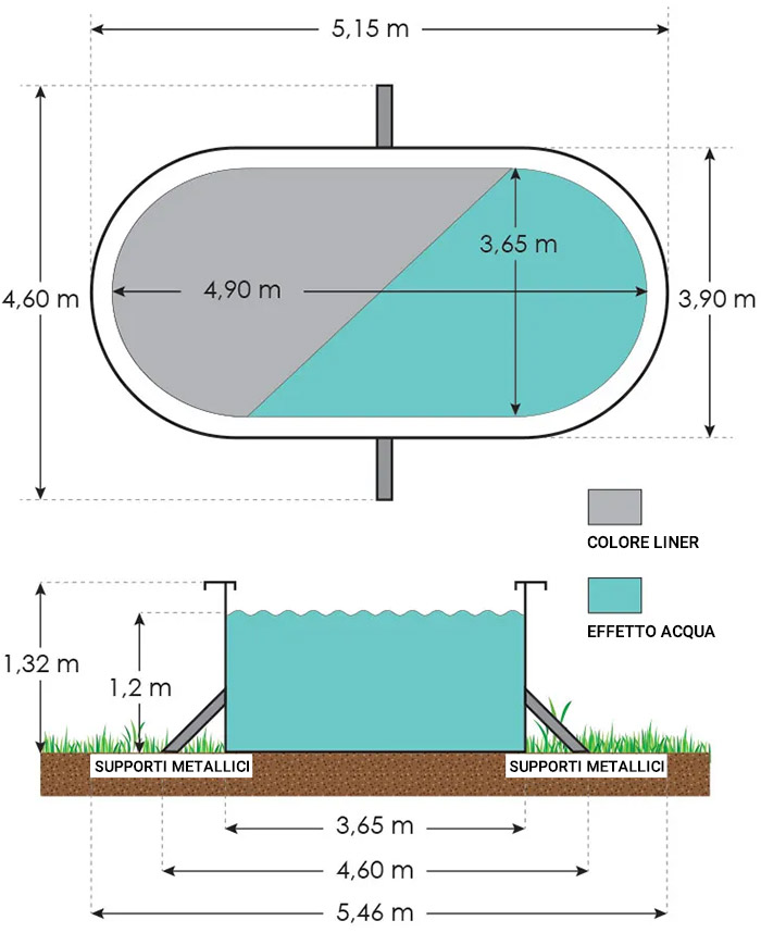Piscina fuori terra STEELDESIGN - 4,90 x 3,65 x h.1,32 m