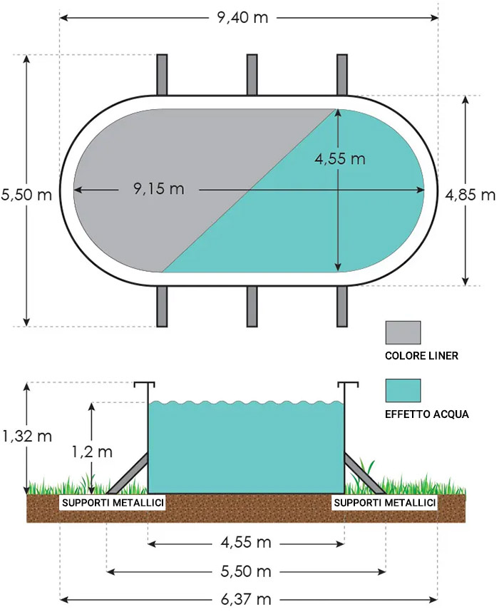 Piscina fuori terra STEELDESIGN - 9,15 x 4,55 x h.1,32 m