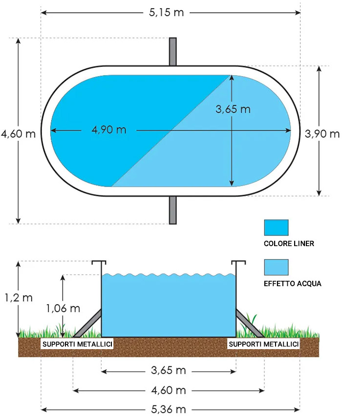 Attenzione: la piscina prevede barre di contenimento interrate da montare trasversalmente sotto al piano d'appoggio.