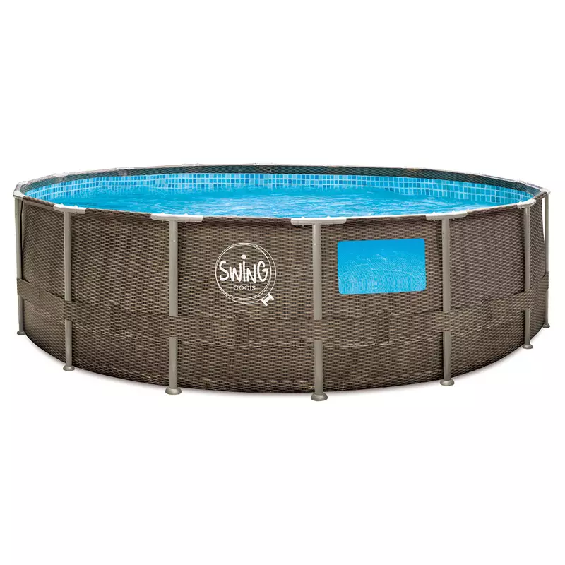 Piscina Fuori Terra SWING METAL FRAME WICKER DESIGN con finestra Ø 4,57 x h 1,22 m