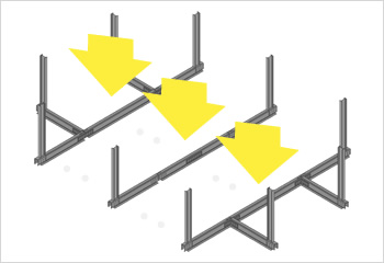 Il telaio si compone di travi di acciaio verniciato che vanno assemblate tra loro attraverso viti e bulloni.