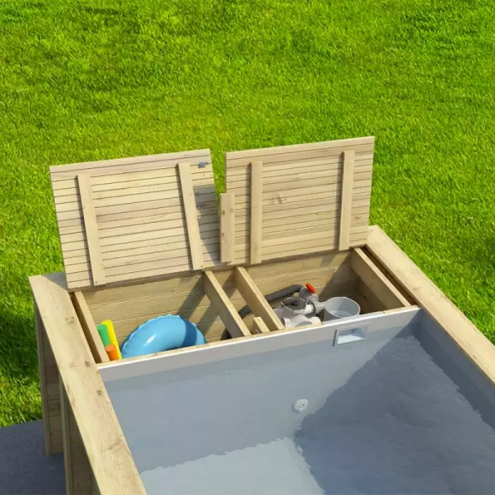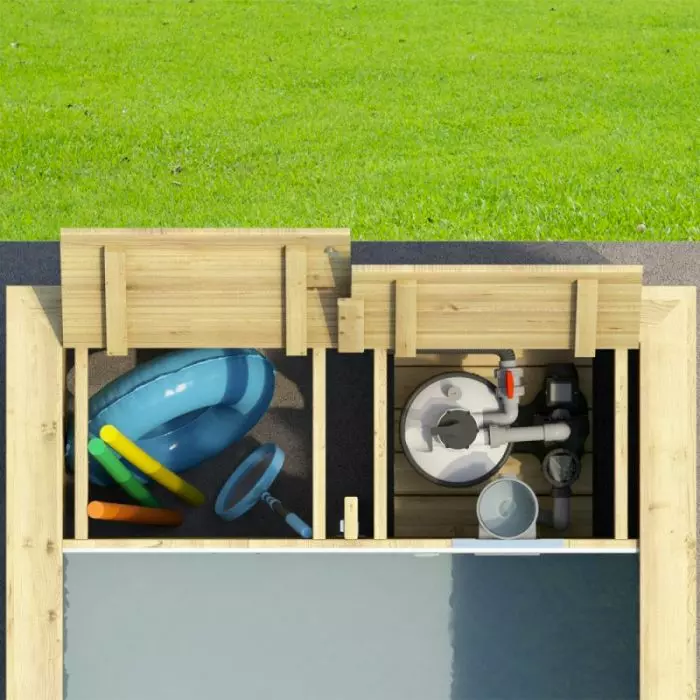 - BOX libero per riporre gli oggetti da utilizzare in piscina (esempio salvagente o attrezzi per la pulizia)