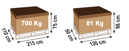 La consegna avverrà con mezzo dotato di sponda idraulica e carrello se l'accesso all'indirizzo di destinazione merce consente il passaggio e la manovra di un veicolo con motrice/rimorchio (lungo fino a 14 metri).
