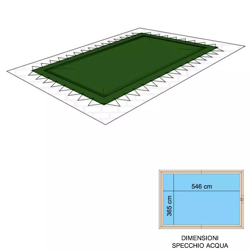 Dimensioni specchio dell'acqua: 5,46 x 3,65 x h. 1,25 m
