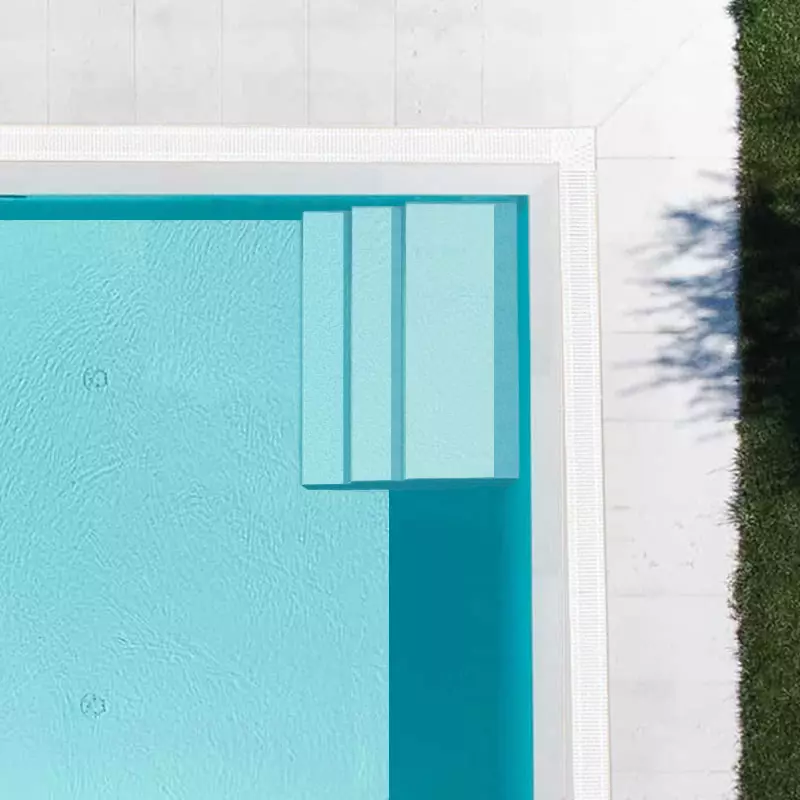 Scala interna in EPS angolare di dimensioni 1,60 x 1,60 h 0,90 m rasata da installare sotto il liner della piscina.