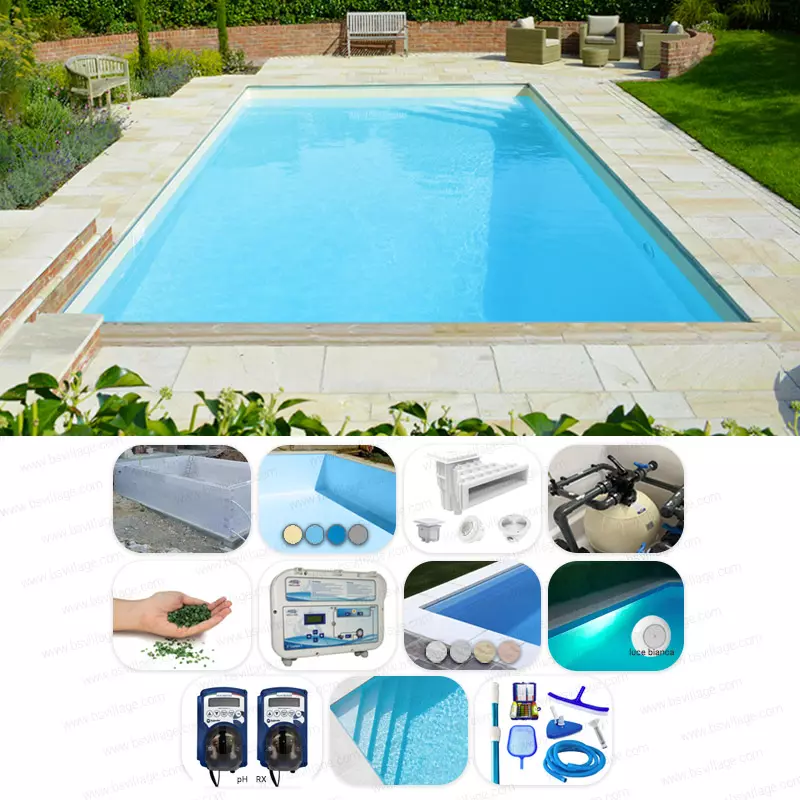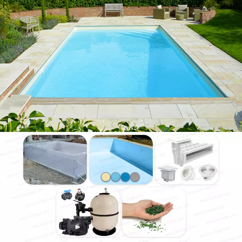 BSVillage ti propone kit d'installazione composti da struttura in casseri di polistirolo ad incastro e dai componenti necessari all'installazione e all'utilizzo: i kit che proponiamo sono una base da cui partire, poi ti seguiremo passo passo nella configurazione della piscina dei tuoi sogni. Puoi scegliere, ad esempio, di avere il nuoto controcorrente per allenarti oppure l'idromassaggio per rilassarti dopo una giornata di lavoro, o ancora l'illuminazione LED oppure degli scenografici gradini di ingresso in acqua, ecc.