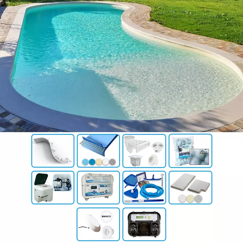 - Kit PRO: per chi è alla ricerca di un kit più completo, dotato di alcuni tra gli accessori maggiormente richiesti come il kit di pulizia, i bordi in pietra ricostruita e il quadro elettrico.