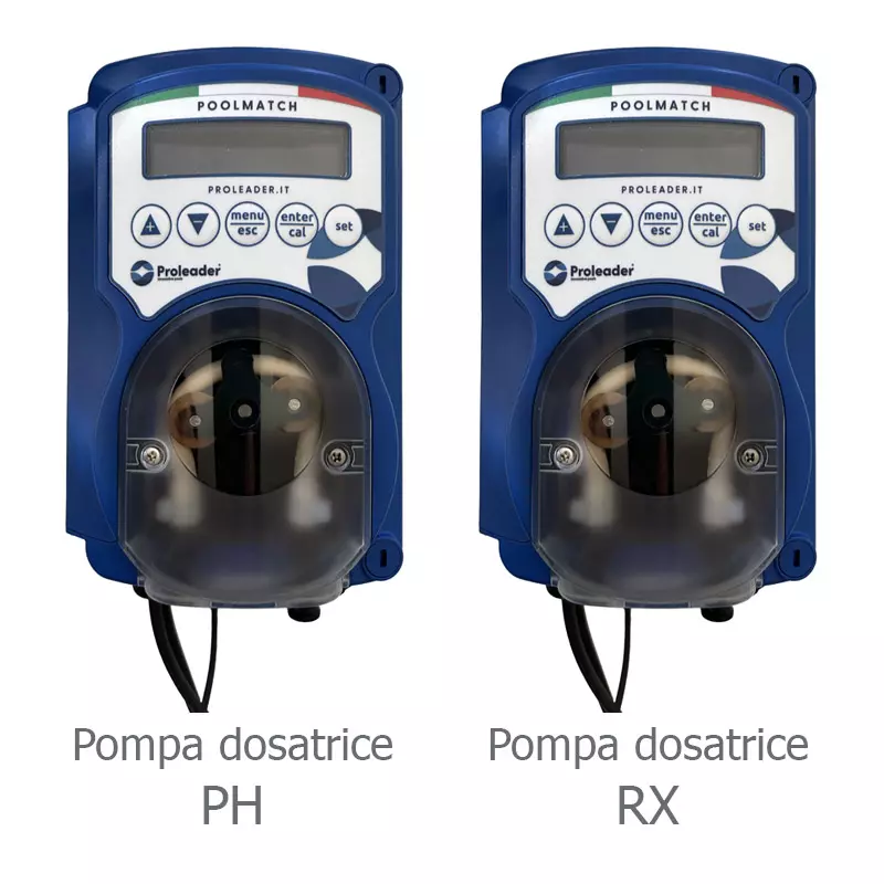 #9 / Pompa dosatrice PoolMatch pH e pompa dosatrice PoolMatch RX, strumenti di ultima generazione per la misurazione e regolazione dei valori pH e cloro (RX). Display digitale, menu di utilizzo semplice, adatto al cliente privato. Complete di kit e accessori per una corretta installazione. Con questa centralina non è necessario installare lo sterilizzatore al sale.