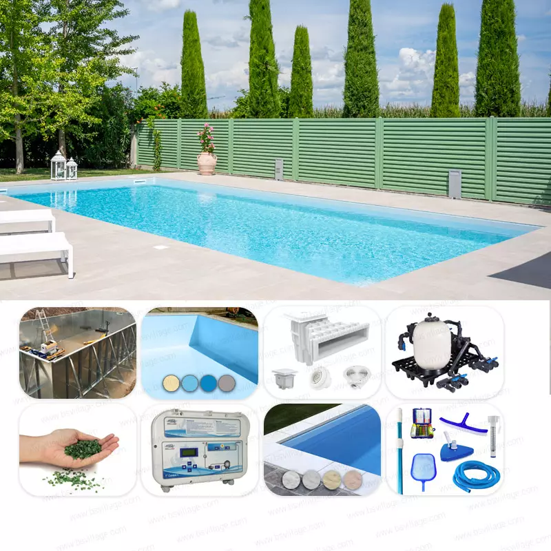 - Kit PRO: per chi è alla ricerca di un kit più completo. Comprende già alcuni tra gli accessori maggiormente richiesti come il kit di pulizia, i bordi in pietra ricostruita e il quadro elettrico.