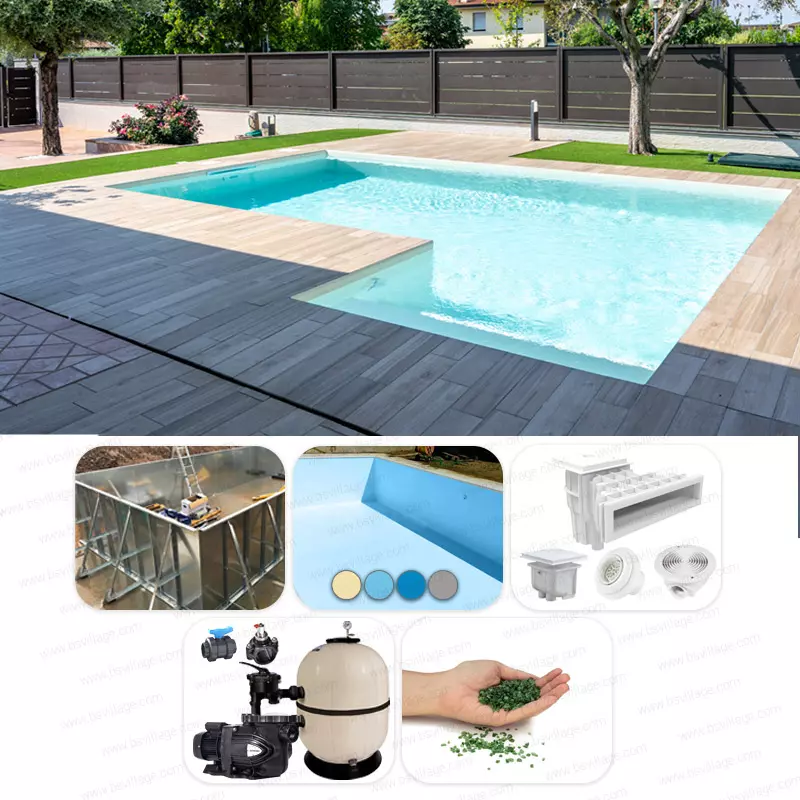 Le strutture sono in acciaio con rivestimento Magnelis, solide e durature nel tempo, e tutti gli altri componenti sono completamente personalizzabili per rispondere alle tue esigenze ed alle caratteristiche dello spazio dove sarà installata la piscina. I kit di installazione che proponiamo sono una base da cui partire poi ti seguiremo passo passo nella configurazione della piscina dei tuoi sogni.