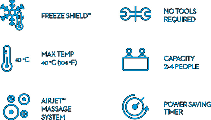 Goditi la tua vasca idromassaggio anche in pieno inverno grazie all'innovativo sistema Freeze Shield™. Questo tecnologia assicura che la camera d’aria della SPA non congeli e resista all’aperto anche al freddo.