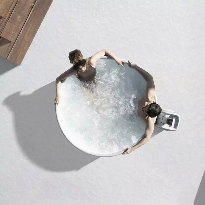 Le pareti sono realizzate in materiale a punto goccia (Drop Stitch), fornendo una spa dai lati rigidi e resistente
