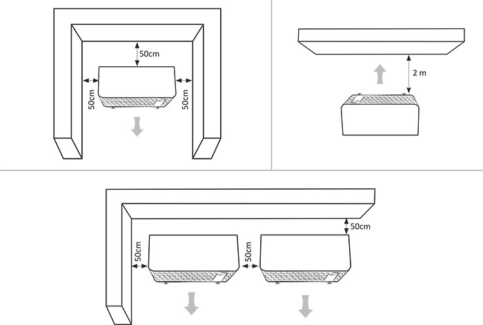 Lasciare uno spazio vuoti di almeno 50 cm ai lati e dietro la pompa di calore