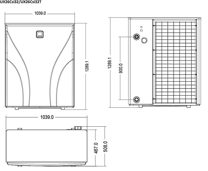 Dimensioni pompa di calore: 103,9 x 46,7 x h. 128,9 cm