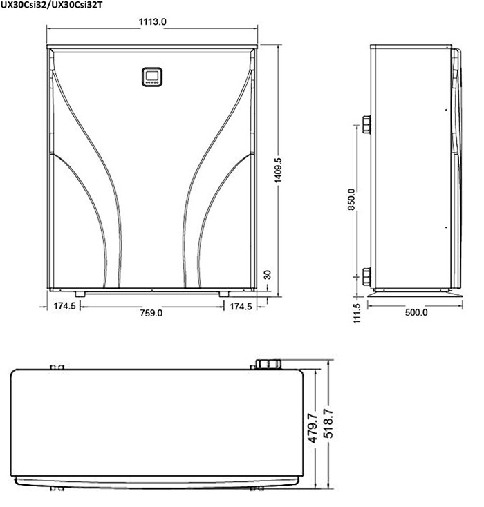 Dimensioni pompa di calore: 111,3 x 48 x h. 141 cm