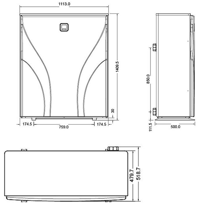 Dimensioni pompa di calore: 111,3 x 48 x h. 141 cm