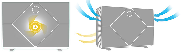Design brevettato con ventola nascosta e bocchette posteriori