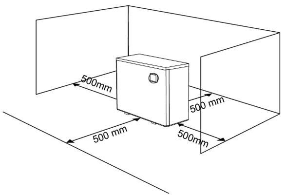Lasciare uno spazio vuoti di almeno 50 cm ai lati e dietro la pompa di calore