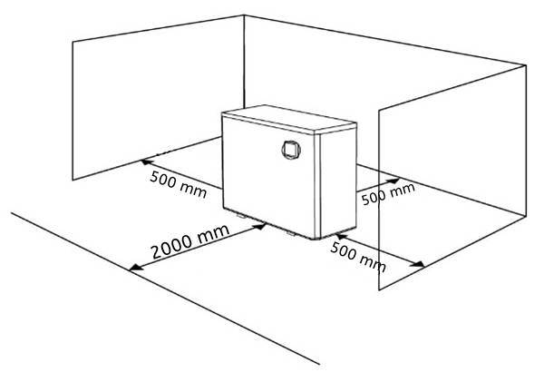 Ostacoli come muri o vegetazione dovranno essere separati dalla macchina come indicato nel seguente schema