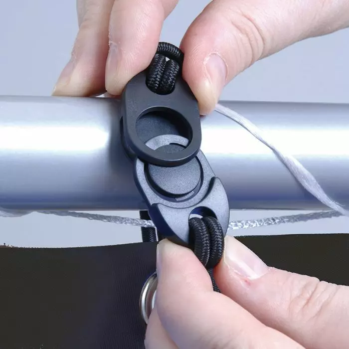 6. Agganciare il telo utilizzando il sistema di ganci Quick-Snap.