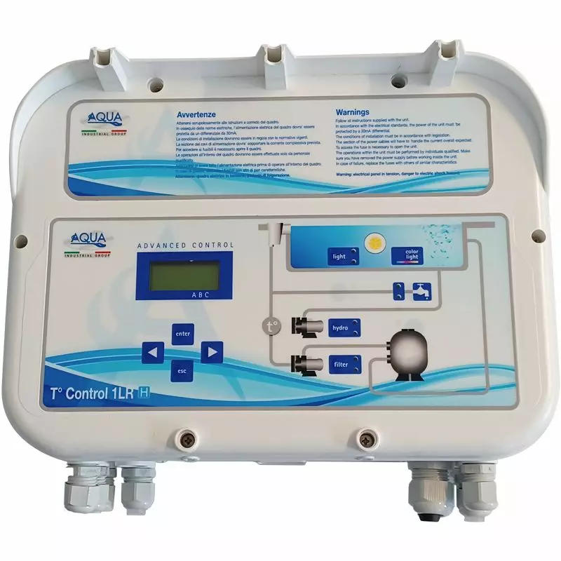 Il quadro elettrico T-CONTROL 1 by AQUA è un prodotto innovativo che ti permette di controllare contemporaneamente le diverse funzionalità della piscina con skimmer, utilizzando un solo dispositivo.