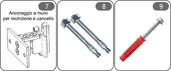 Nel caso in cui una colonna o un cancelletto termini contro un muro, è necessario eseguire un fissaggio tramite apposito ancoraggio.