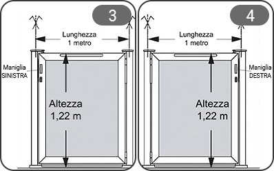 Maniglia posizionata sul lato sinistro e apertura verso destra.