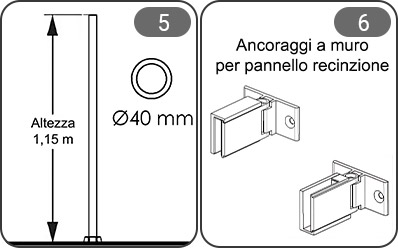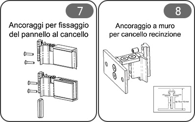 6) Ancoraggi a muro per sostegno del pannello della recinzione