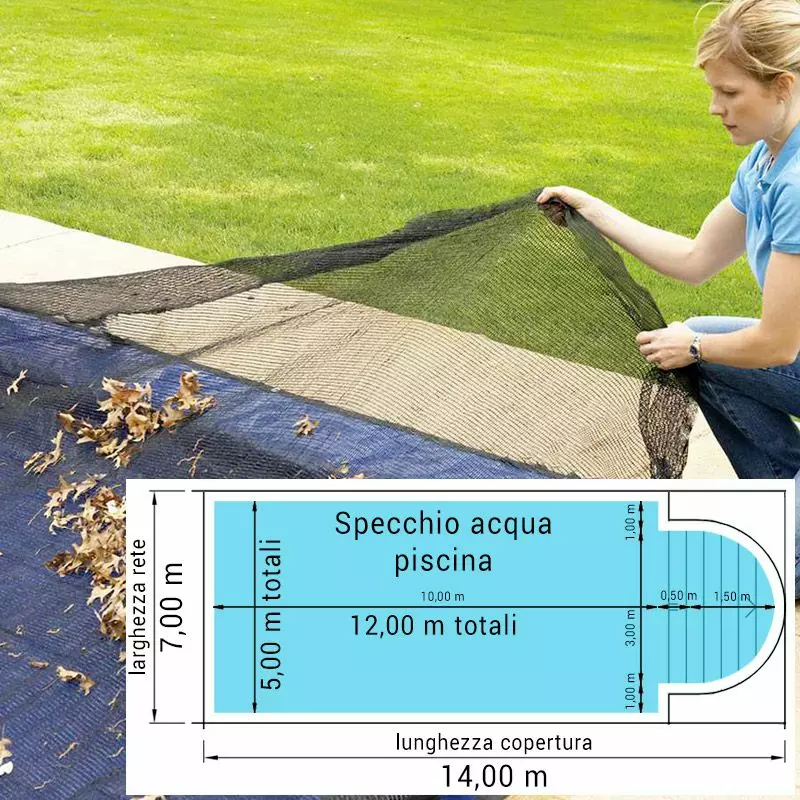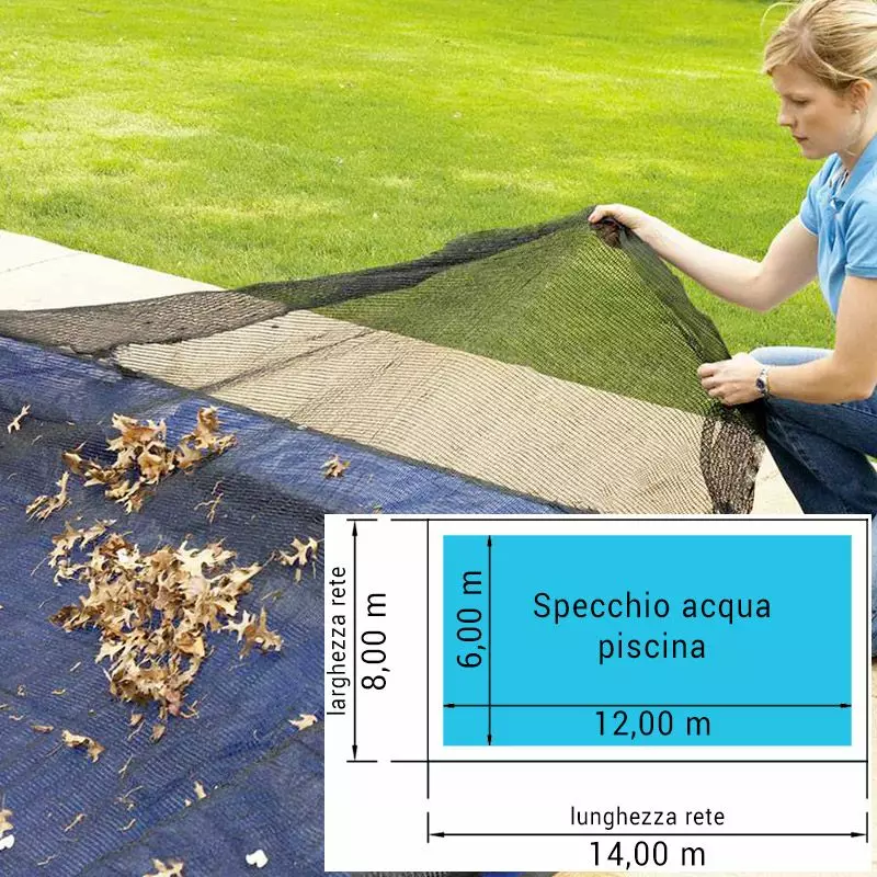 Rete raccogli foglie 14,00 x 7,00 m per piscine fino a 12,00 x 5,00 m con scala romana