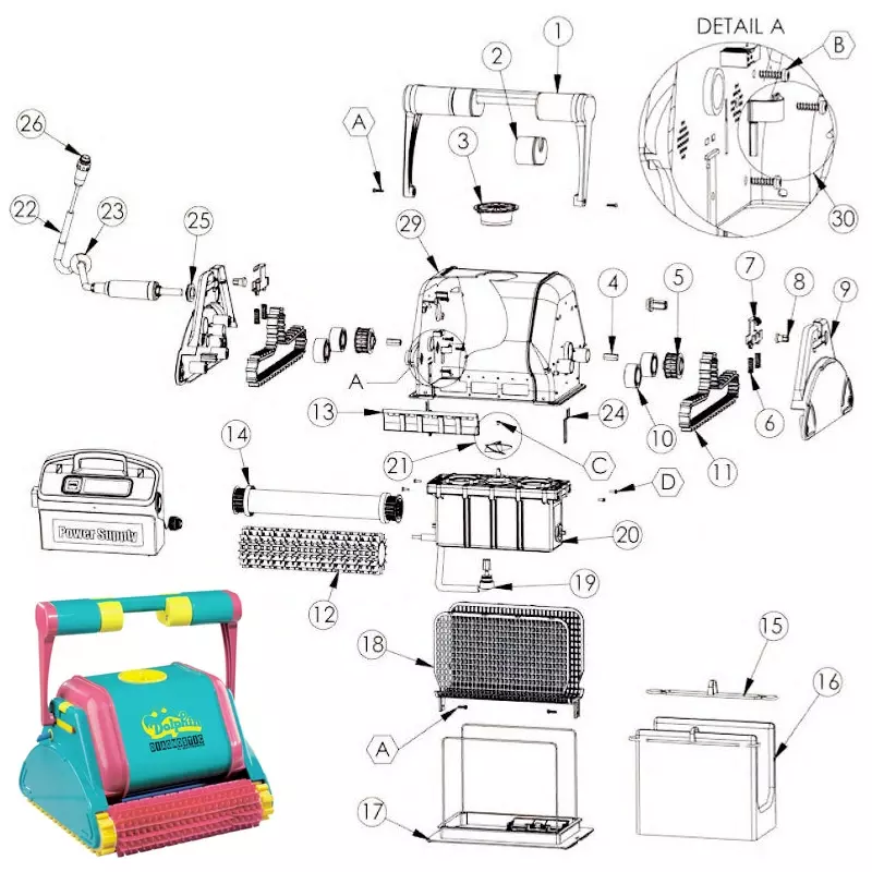 Ricambi per robot piscina dolphin diagnostic 20011 - Gruppo trasporto 2001