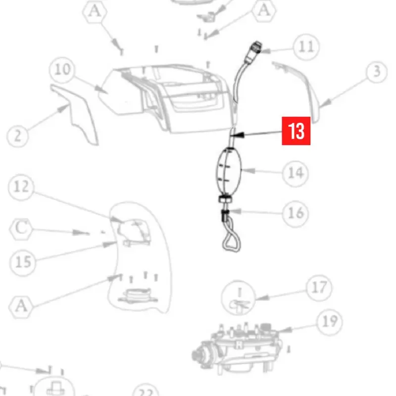 Individua il ricambio che ti occorre sull'immagine dell'esploso del robot, trova l'opzione con il numero corrispondente e inserisci la quantità desiderata.
