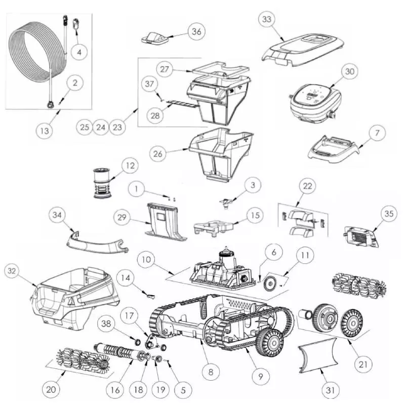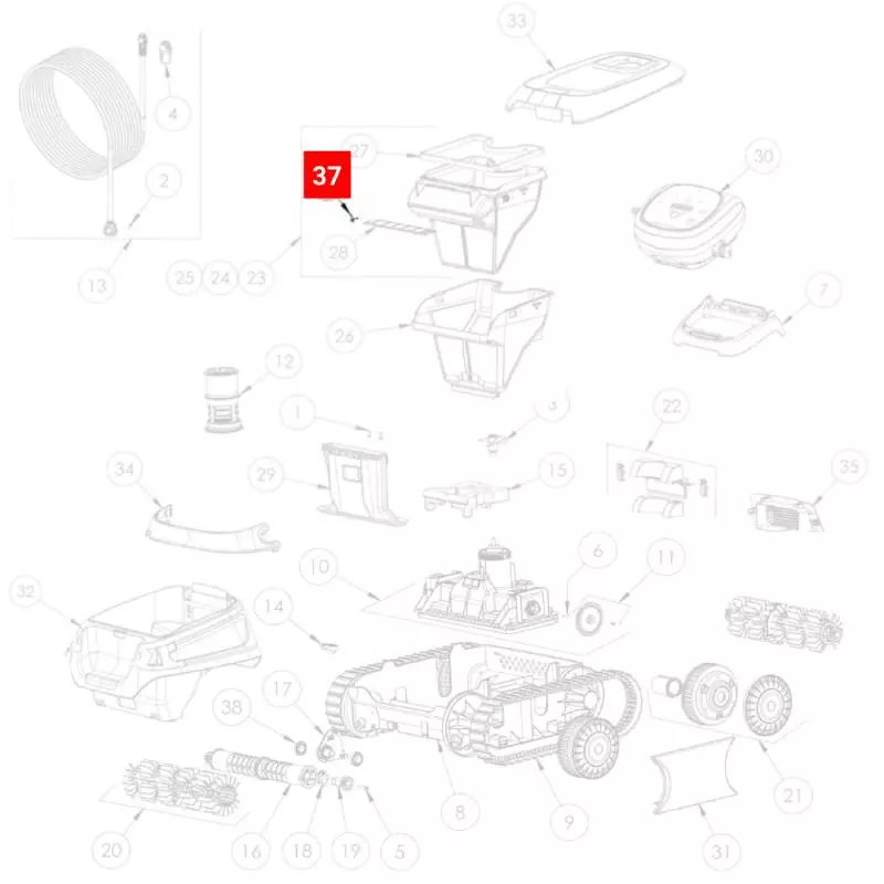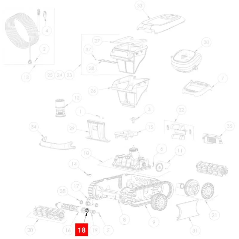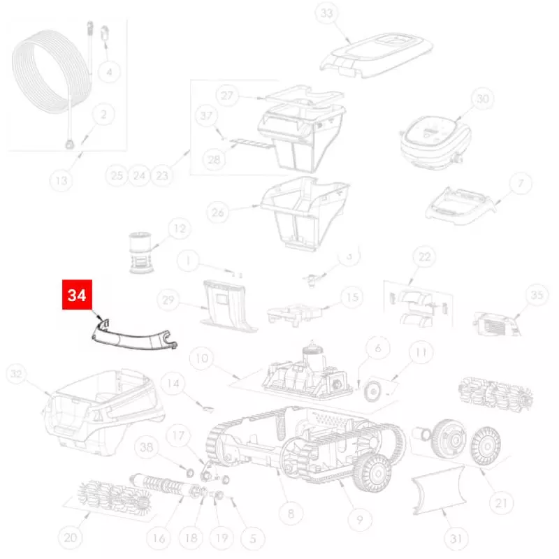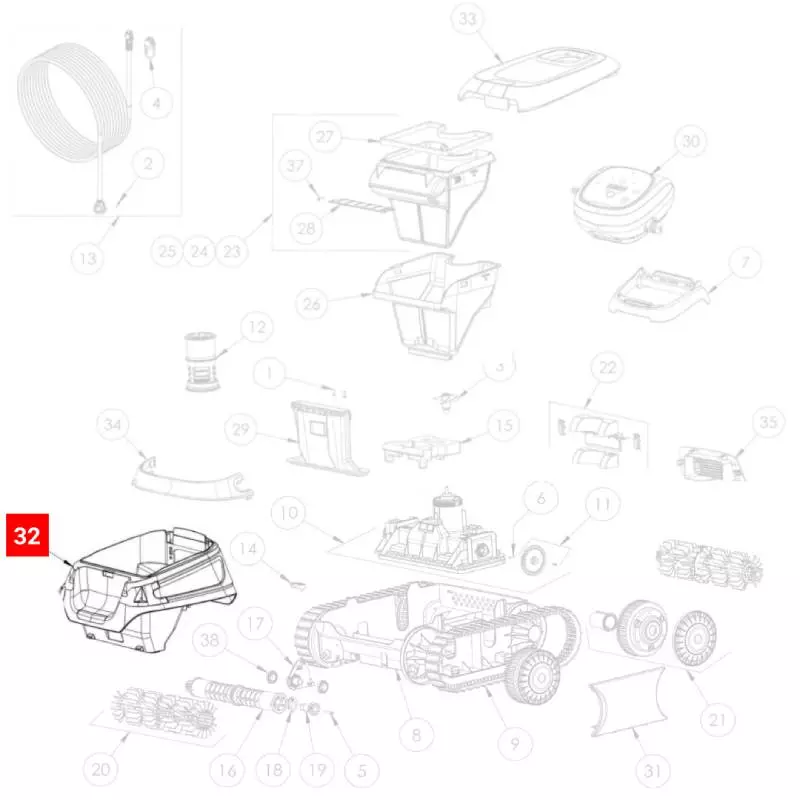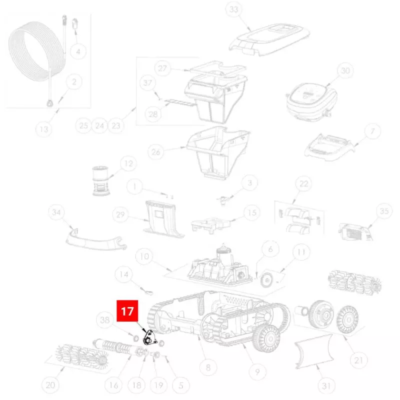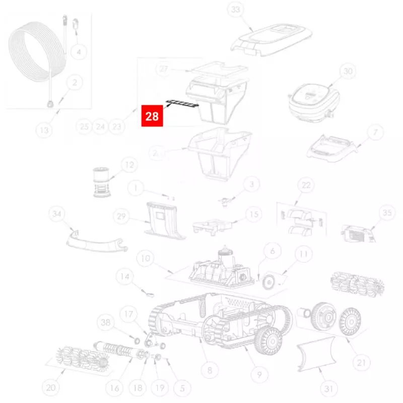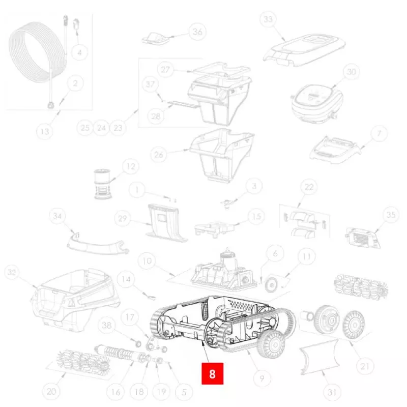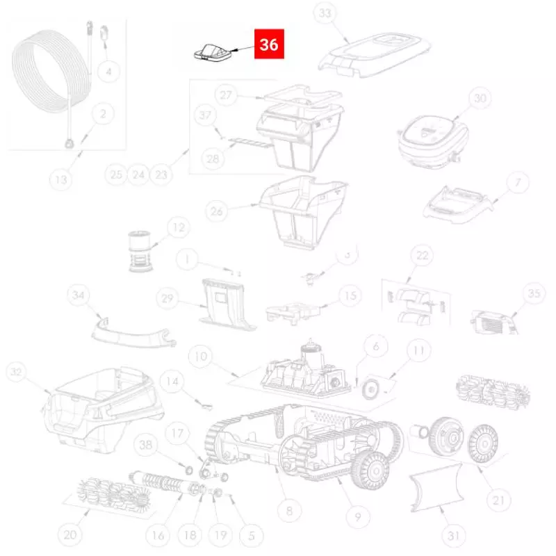 Individua il ricambio che ti occorre sull'immagine dell'esploso del robot, trova l'opzione con il numero corrispondente e inserisci la quantità desiderata.