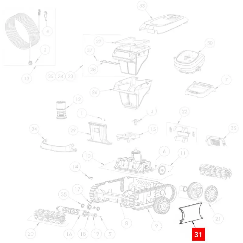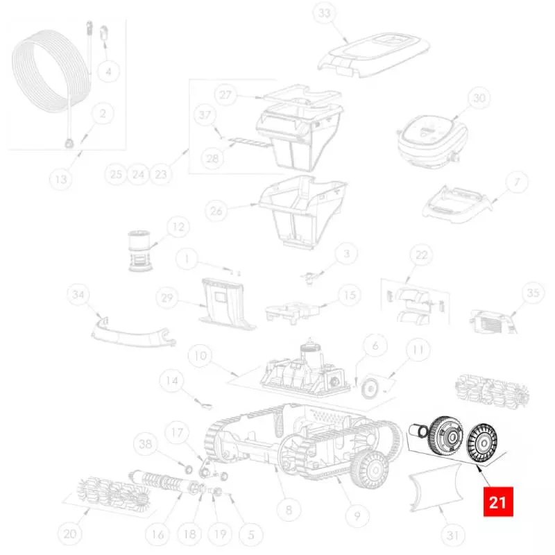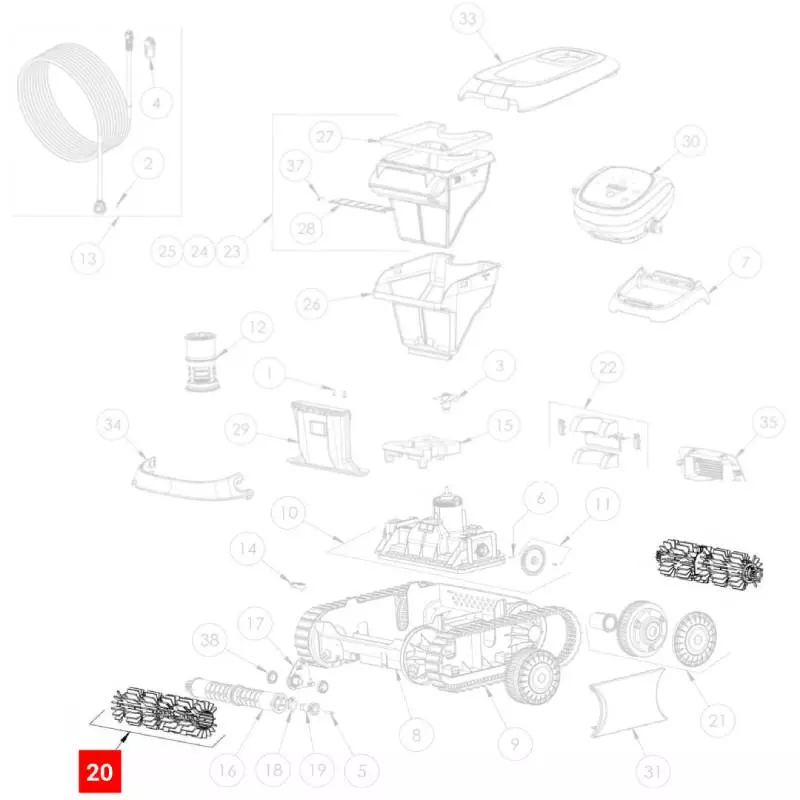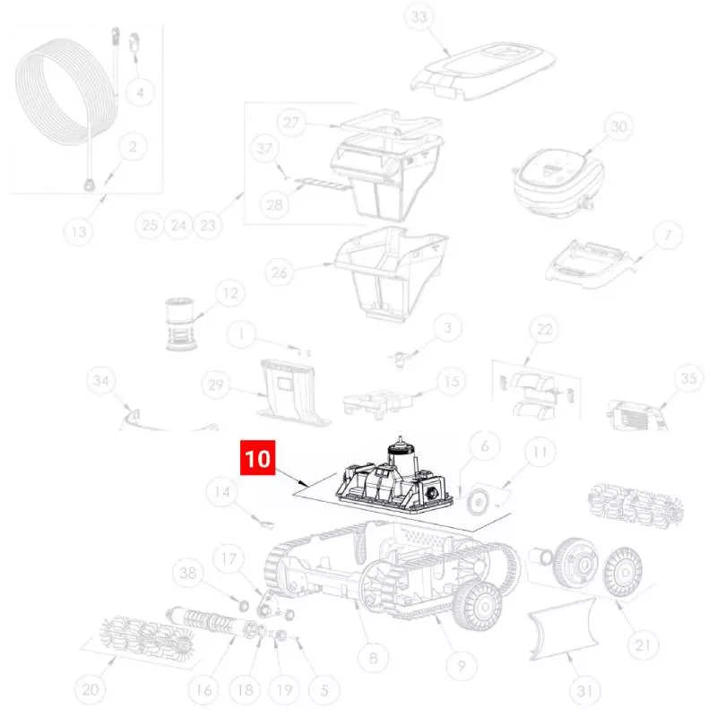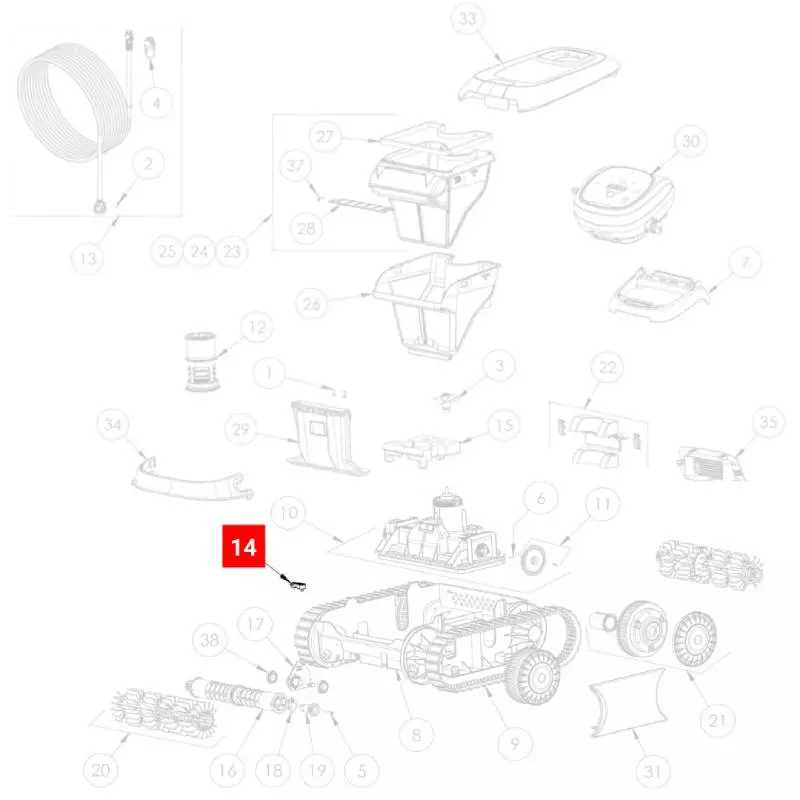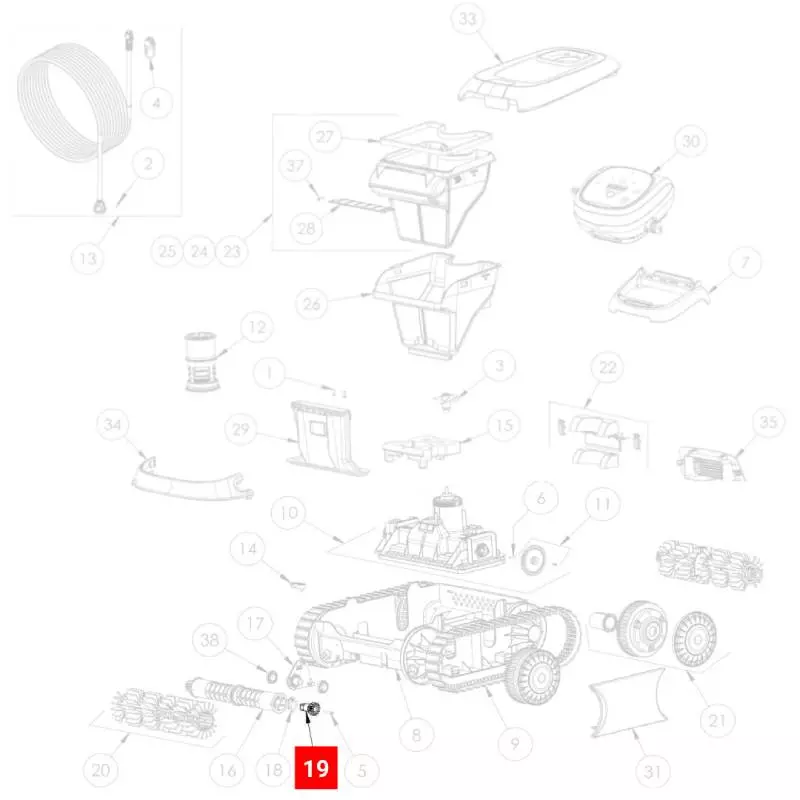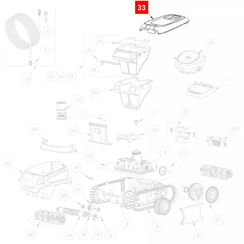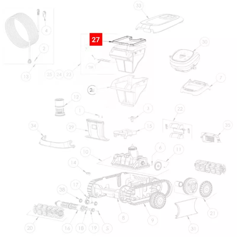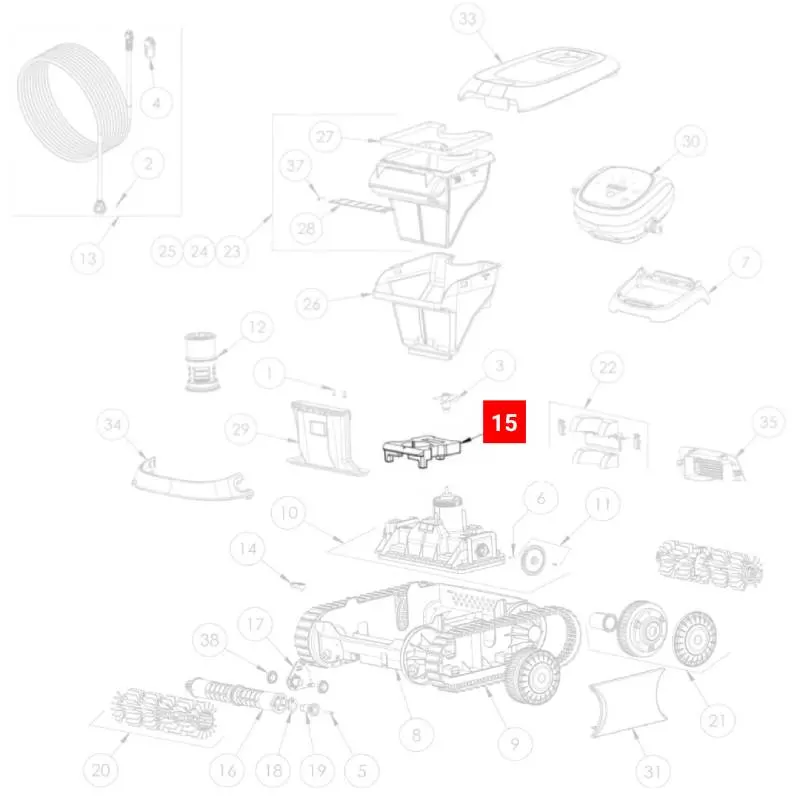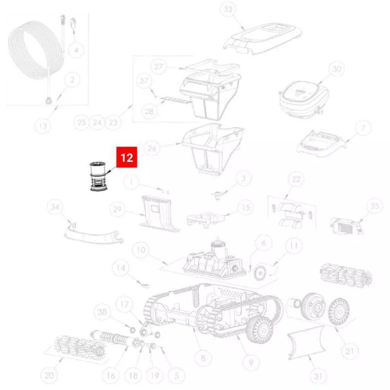 Individua il ricambio che ti occorre sull'immagine dell'esploso del robot, trova l'opzione con il numero corrispondente e inserisci la quantità desiderata.