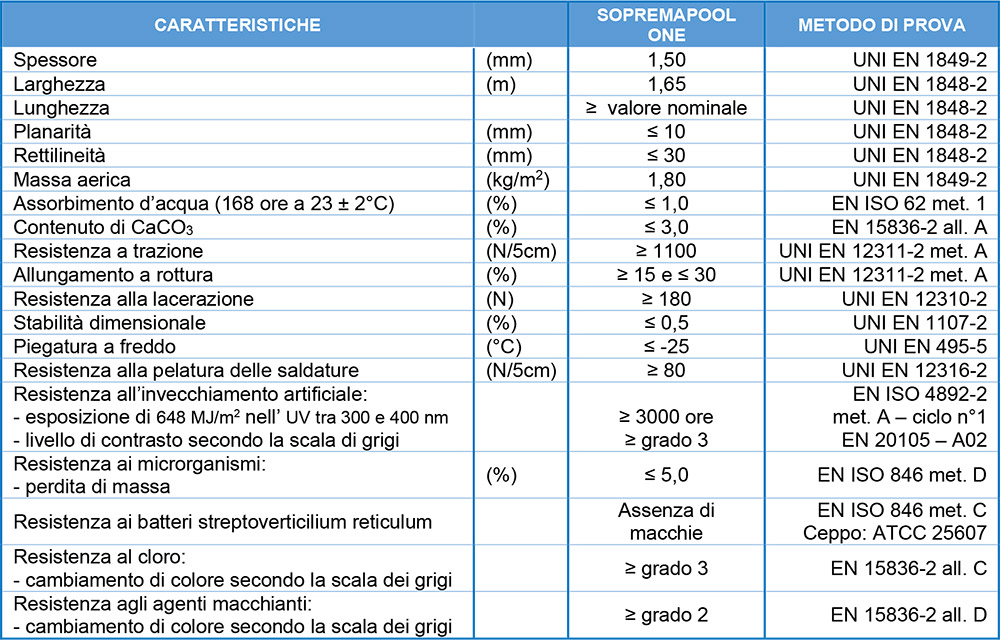 SopremaPool One è un prodotto made in Italy realizzato secondo la norma Europea EN 15836-2 (2010)