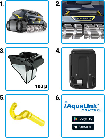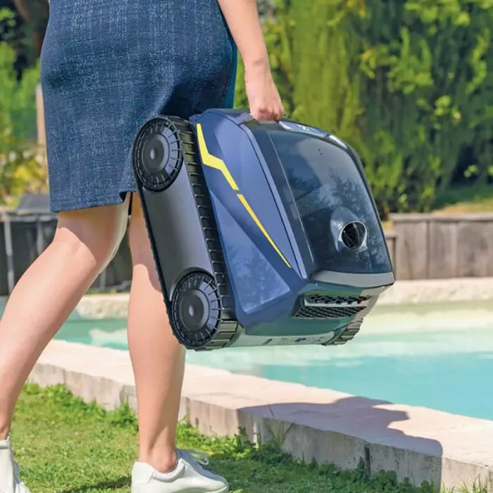 Questo robot cordless è facile da usare grazie alla batteria agli ioni di litio a lunga durata, che permette di pulire il fondo della piscina con un ciclo da 1h 30min, oppure fondo, pareti e linea dell'acqua con un ciclo da 2 ore.