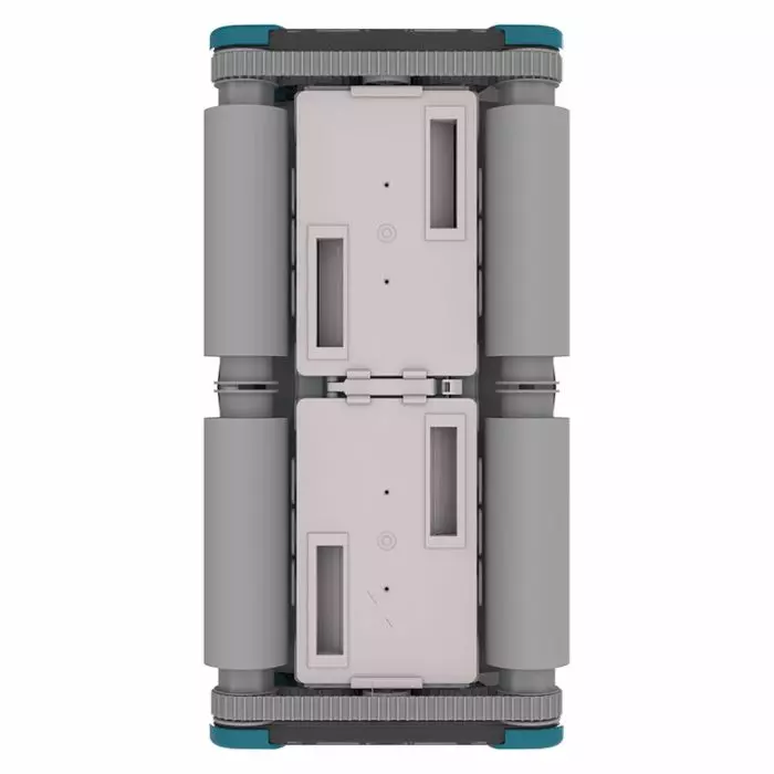 Il robot è progettato per muoversi utilizzando i cingoli posti ai lati. In questo modo le spazzole frontali sono in grado di rimuovere lo sporco in maniera più efficace.